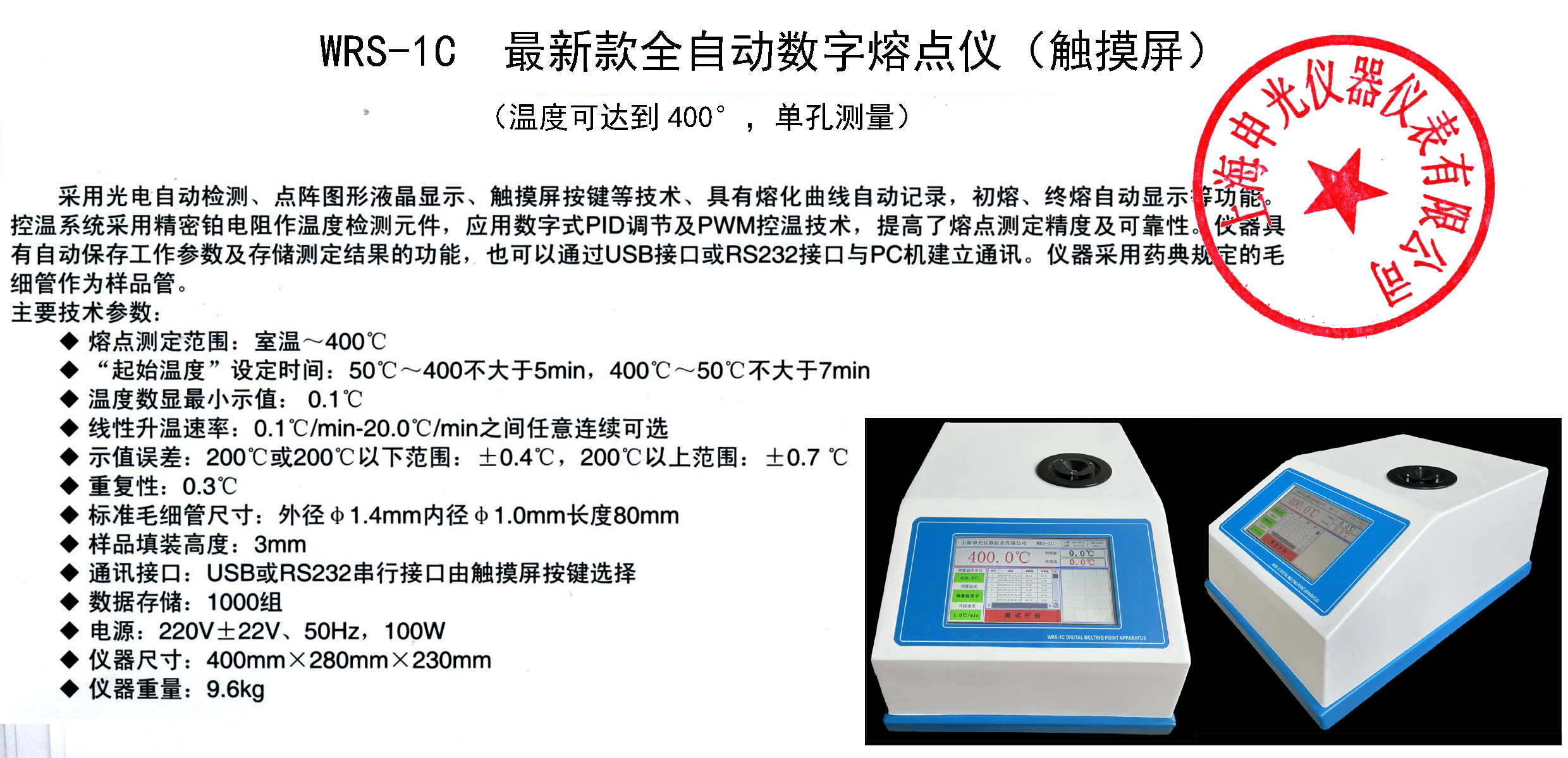 熔点测定范围:室温~400℃ | ||||||||||||||||||||||||||||||||